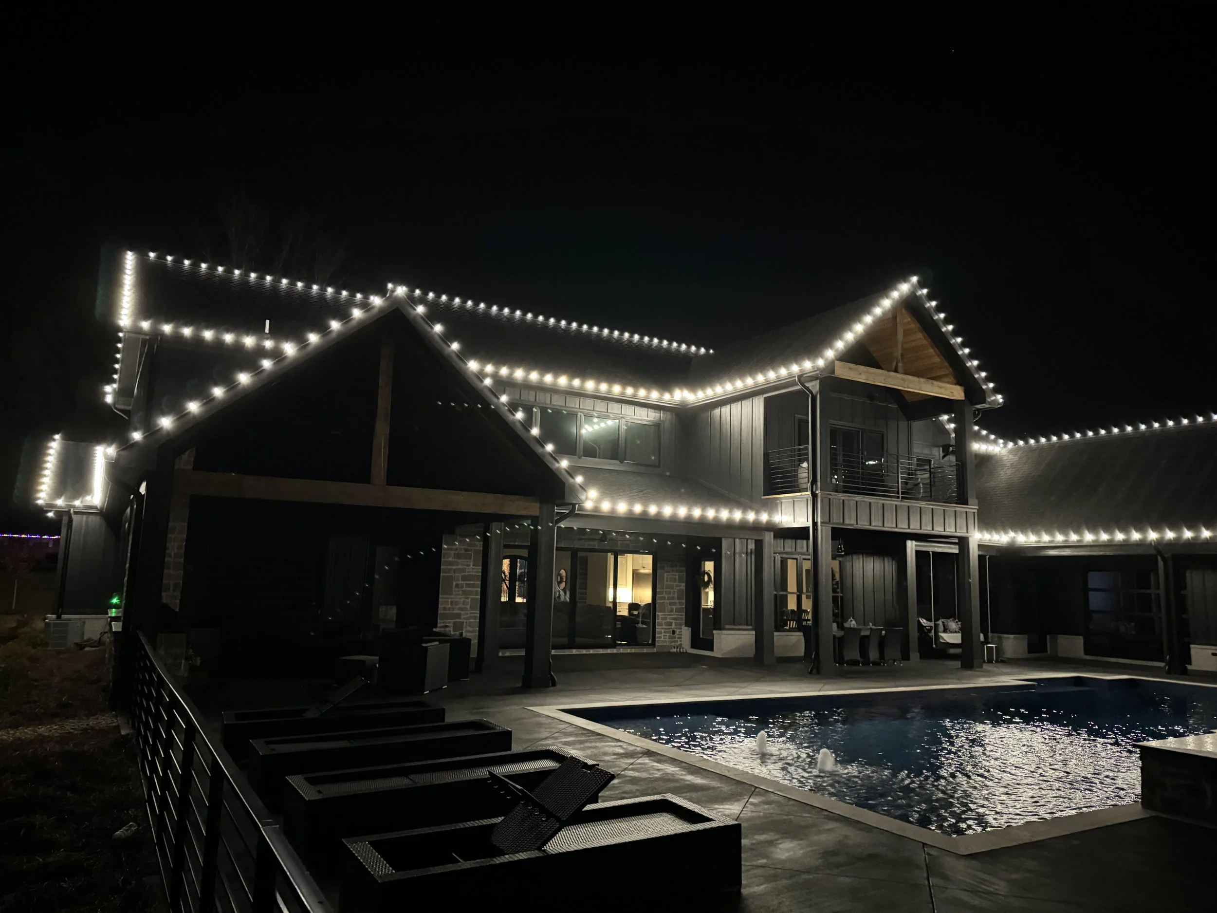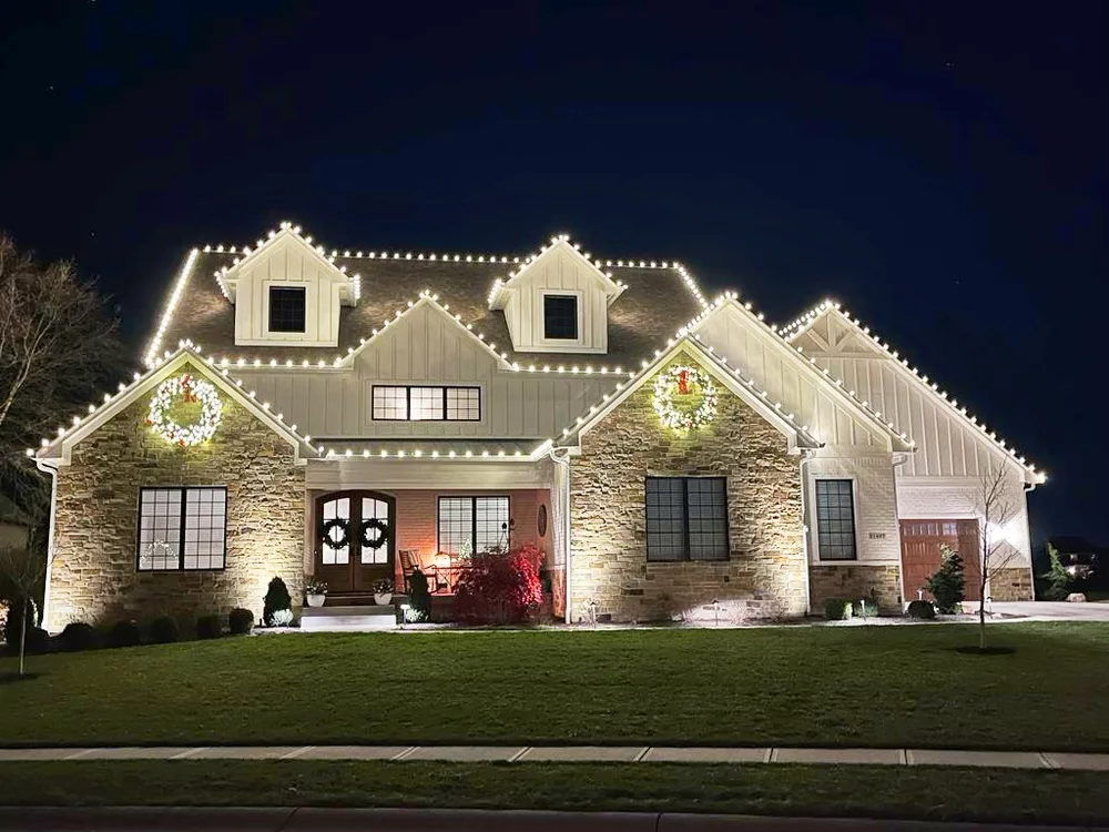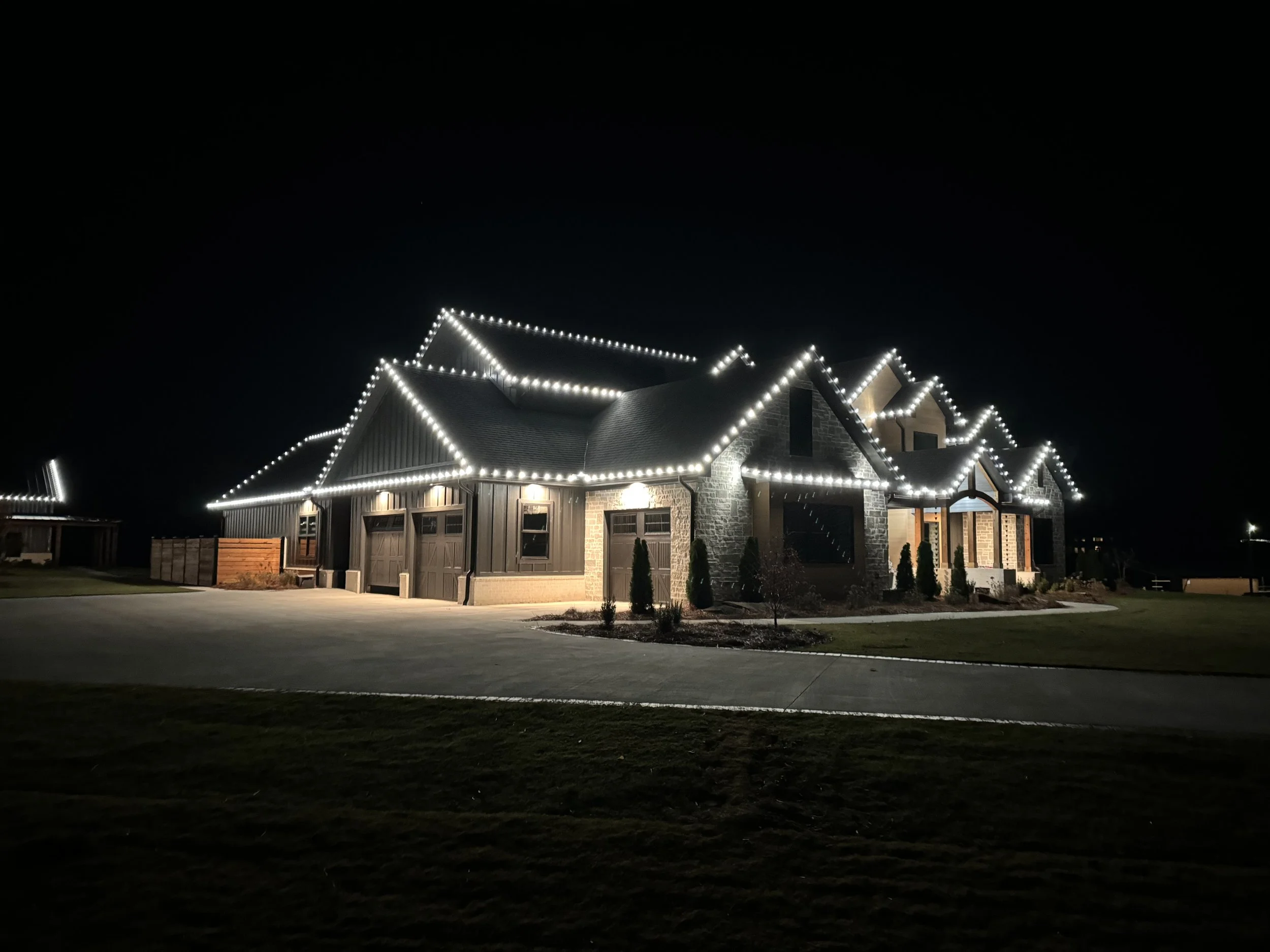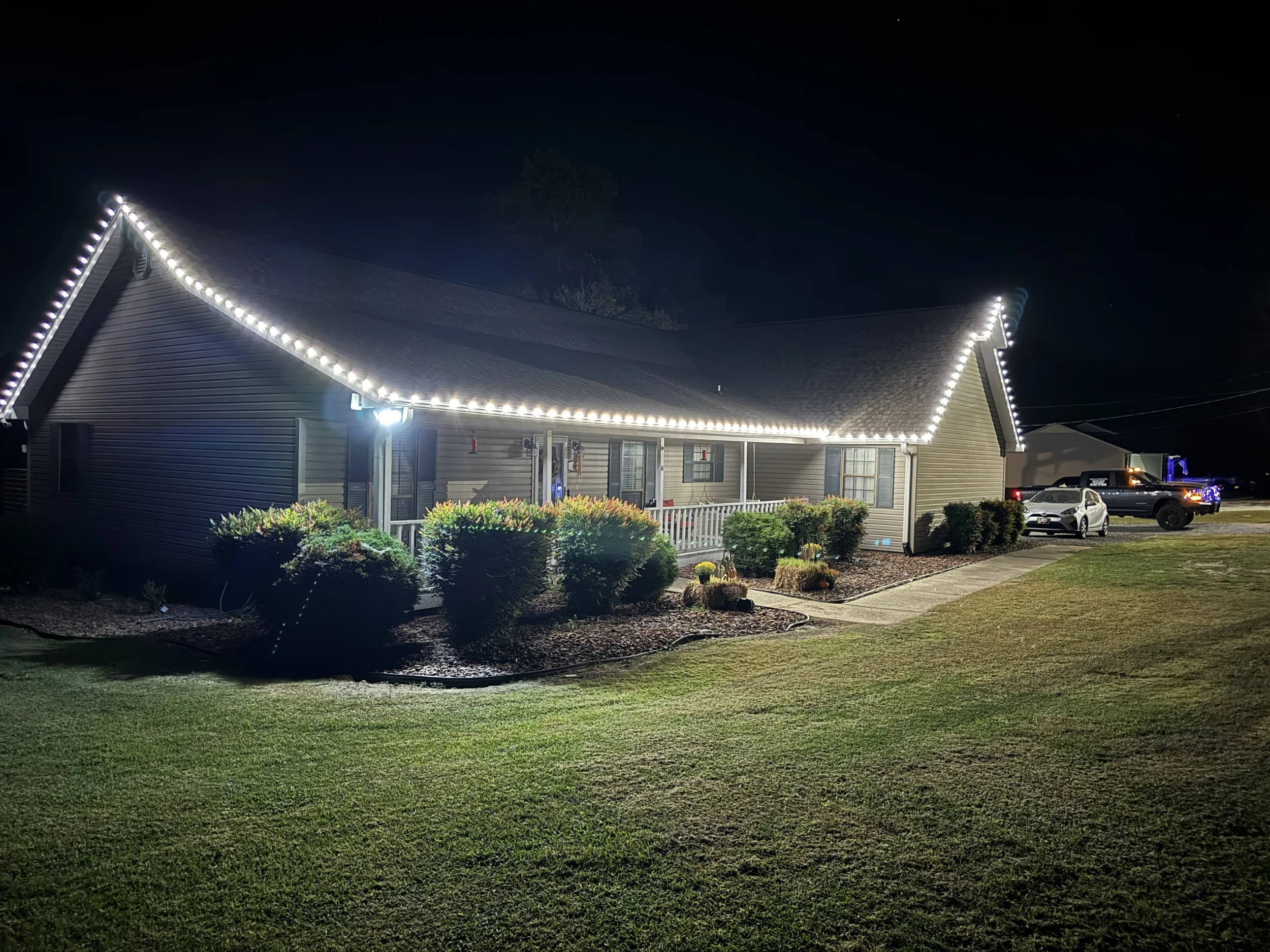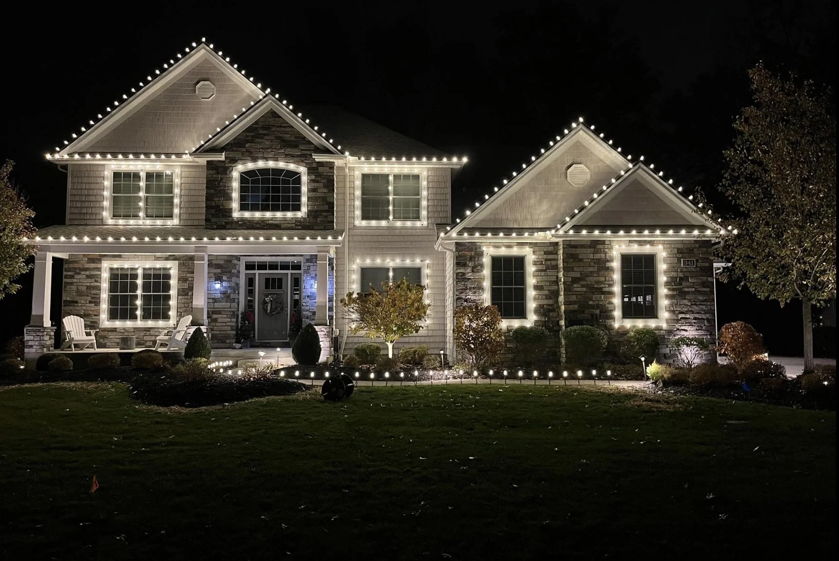 Make your home sparkle with roofline lights, trees, bushes, and custom yard décor.